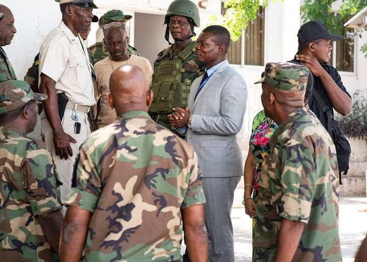 Port-au-Prince, le 5 août 2024 — Le directeur général du ministère de la Défense, Jean Ronel Sistanis, a effectué une visite stratégique au Grand quartier général et à la base des Forces armées d’Haïti (FADH) à Clercine ce lundi 5 août 2024. Cette visite avait pour objectif d'évaluer le fonctionnement des bureaux et les conditions de travail des employés civils et militaires.